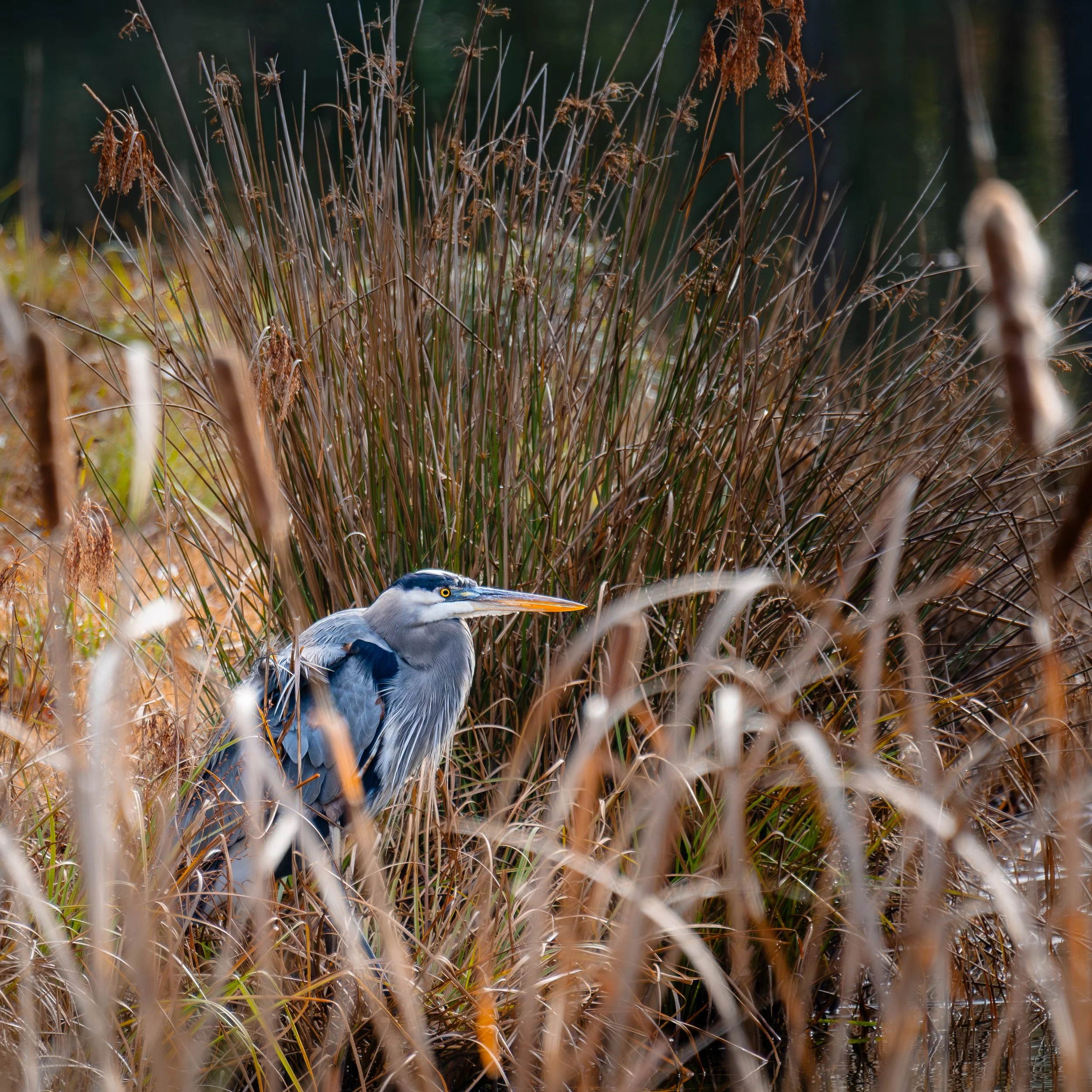 The foreground framing, the grass behind the heron, and the contrasting brown and blue colors really make this image stand out. The viewer just really gets the sense of peering at the bird through the grass. I think he knows you're watching him! Nikon D500 and Nikkor 200-500mm f 5.6 at 400mm / f 6.3 / 1/640 sec / ISO 640.